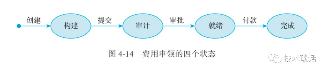 由于业务对象状态常常能同时反映业务和技术两方面的内容,因此完全可以将ExpenseClaimService(费用申领服务)拆分为适应每个状态的多个服务:ClaimEntryService(费用构建服务)、ClaimApprovalService(费用审批服务)、ClaimPaymentService(费用支付服务),得到如下所示的服务代码: