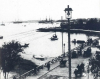 1882年英商上海电光公司成立,同年7月26日对外供应照明用电。当时上海仅有15盏英制弧光灯,每盏亮度2千支光。上图是电灯用作路灯照明后苏州河桥上的弧光路灯。