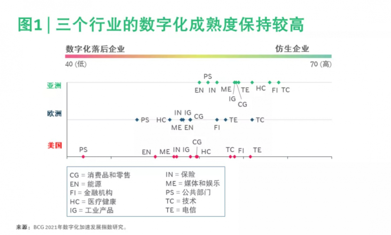 世界上数字化最成熟的企业在价值创造方面领先于其它企业。事实也证明了这些企业在危机期间更具韧性。新冠疫情开始之初,这些企业的市值遭受了重创,随后迅速反弹。在疫情暴发近6个月后,这些企业的估值平均比危机前高出23%,而数字化程度最低的企业平均仅实现了7%的增长。