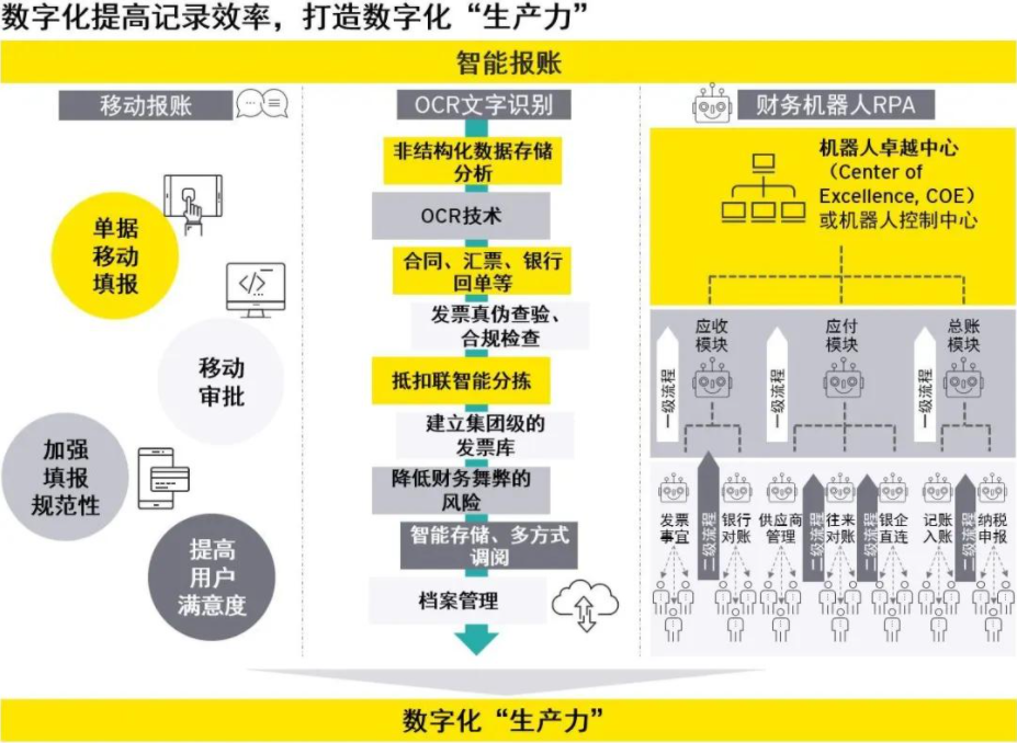 虽然中国企业财务信息化取得长足的进步,但仍存在较多可以改进的空间,例如效率不高,控制不严,分析不精,预测不准等。特别是随着大数据、移动、区块链、人工智能、RPA等新技术的发展,信息技术在财务领域由过去的记录管控业务为主,到现在如何利用数字化的技术在财务领域中逐步起到指导业务的作用,更好地让这些数字化的工具为财务管控赋能,这一直是安永不断努力探索的方向。